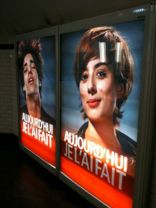Cette phrase est accompagnée sur plusieurs visuels de sous-entendus plutôt coquins (Aujourd’hui je l’ai fait pour de l’argent / Aujourd’hui je l’ai fait et j’y pense encore / Aujourd’hui je l’ai fait et c’était très fort….) pour brouiller nos pauvres cerveaux endormis.